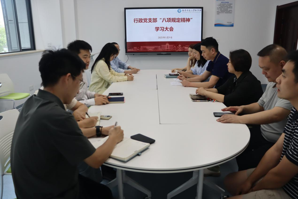 5月9日中午,行政党支部在综合楼227教室召开支部大会,会议由支部书记吴鹏主持,医学部综合办主任周子虬出席会议。