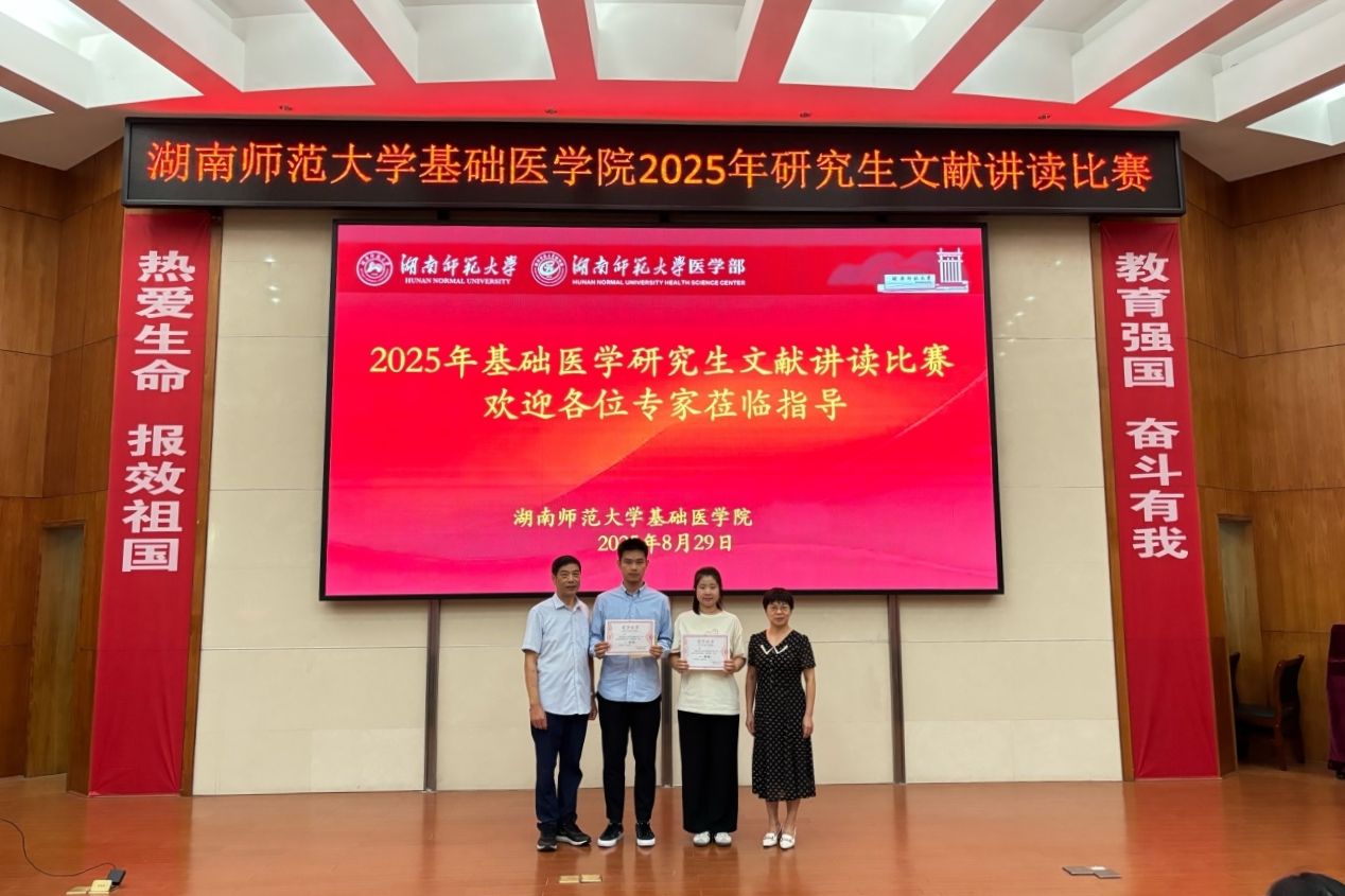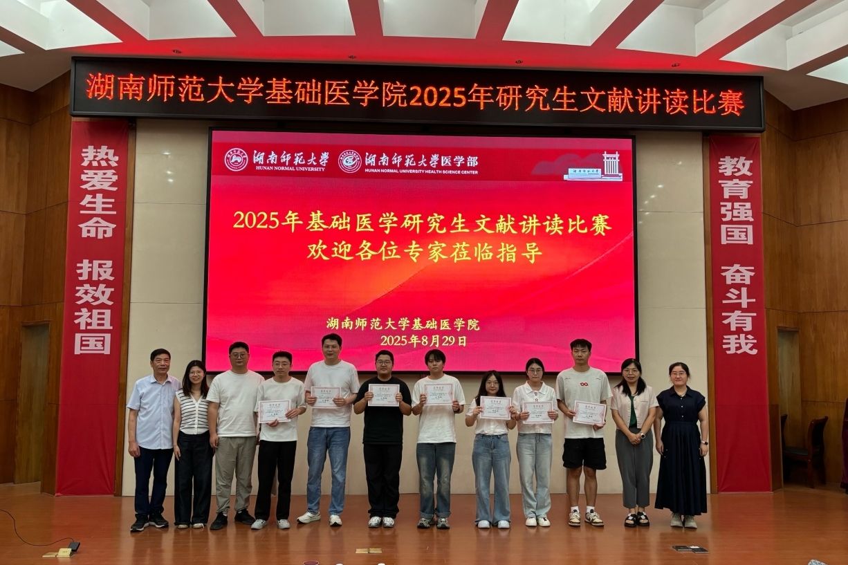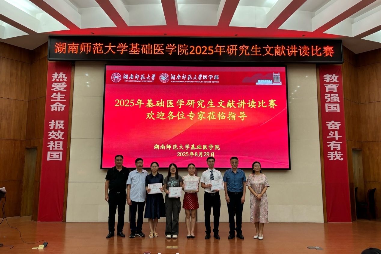 8月29日,正值夏末秋初、暑气未消之际,湖南师范大学基础医学院2025年(第二届)基础医学研究生文献讲读比赛在学术报告厅顺利举行。医学部党工委副书记鄢朝晖、医学科技处副处长余星、医院管理处副处长、护理学院副院长何平平出席比赛。基础医学院邓锡云教授主持比赛。
