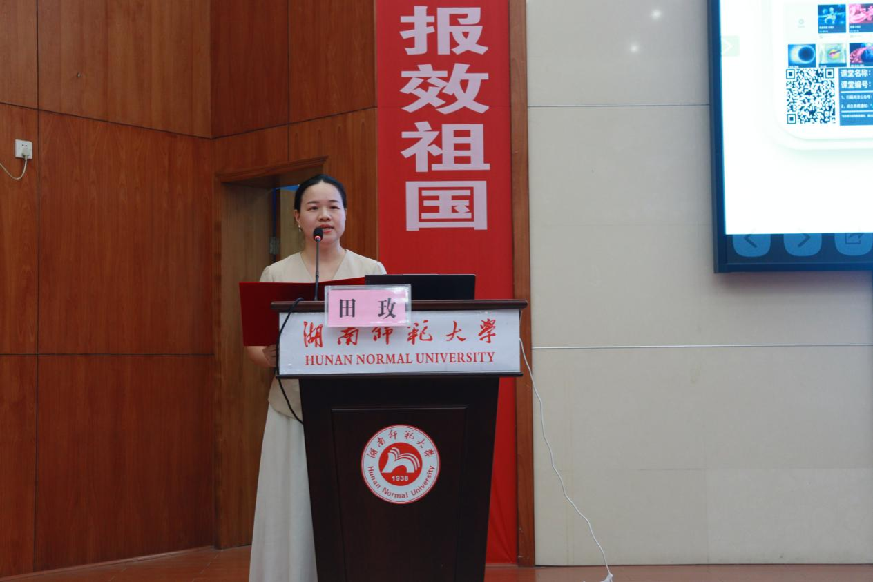 获奖教师代表、基础医学院田玫教授分享了其主讲课程荣获第四届全国高校教师教学创新大赛一等奖的创新实践,介绍了将前沿医学进展、真实临床病例与信息化技术深度融合的教学模式。她表示将以教育家精神为指引,继续深耕教学一线,培养德才兼备的健康守护者。