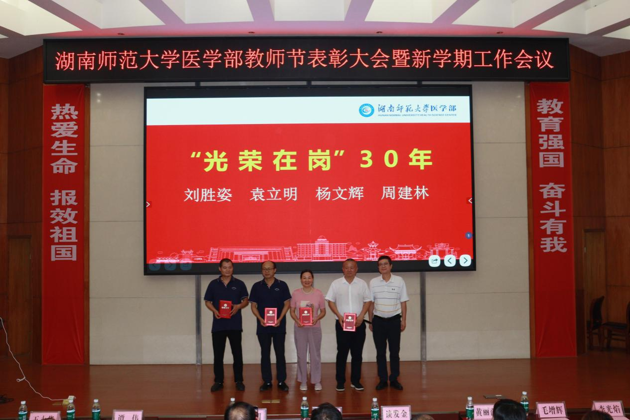 在热烈掌声中,隆重的颁奖仪式依次进行。与会嘉宾为获奖集体与个人颁发了荣誉证书,共表彰了卓越贡献奖、优秀教学奖、优秀科研奖、优秀技能奖、优秀管理奖等13个团队和40位教师,以及"光荣在岗30年"教职工和党建工作"两优一先"获得者。这份沉甸甸的荣誉,不仅是对获奖者卓越成就的肯定,更是校友情系母校、反哺医学教育的深厚情谊的体现。