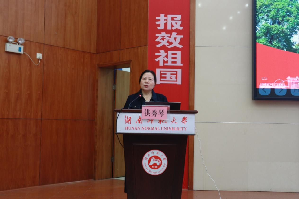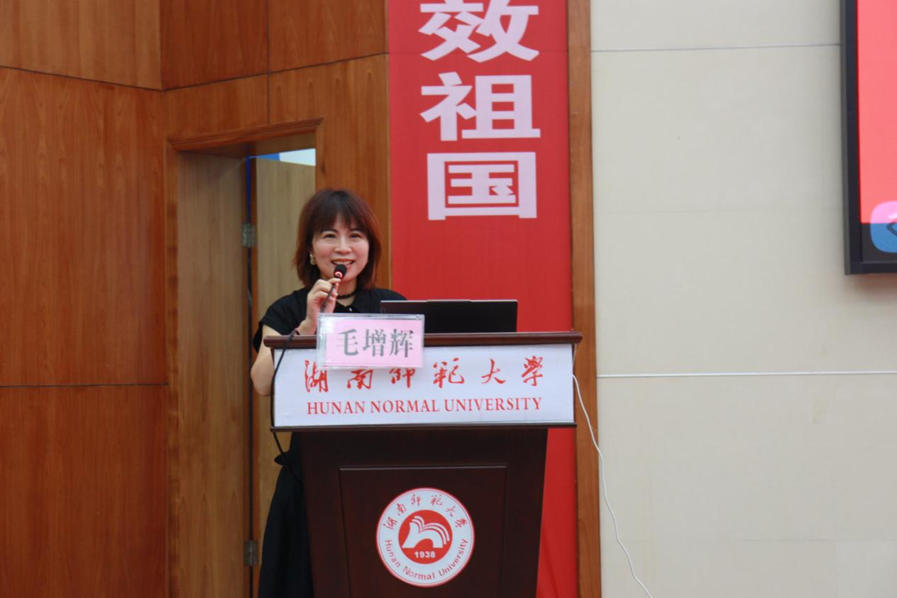 附属长沙市妇幼保健院副院长毛增辉教授作为合作单位代表讲话,用"致敬"、"携手"、"坚定"三个关键词,表达了对医学教育工作者的敬意,回顾了院校双方在共建科研平台、联合培养人才等方面取得的丰硕成果,展望了未来深化医教协同的美好前景。