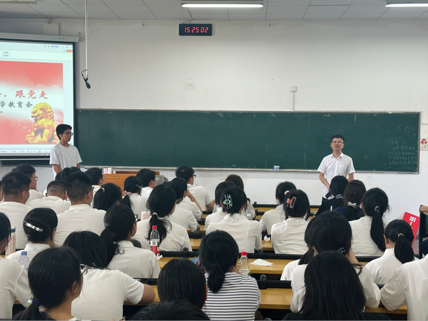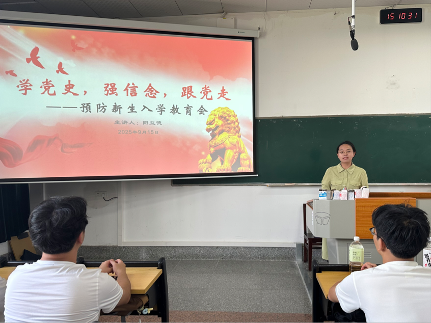 中共公共卫生学院本科生党支部书记,副教授阳益德为新生作了入党启蒙教育。她阐述了预防医学专业学生加入党组织的重要意义,强调党员应具备的服务精神和使命担当,并详细介绍了入党申请的具体流程与基本条件,鼓励有志青年积极向党组织靠拢。