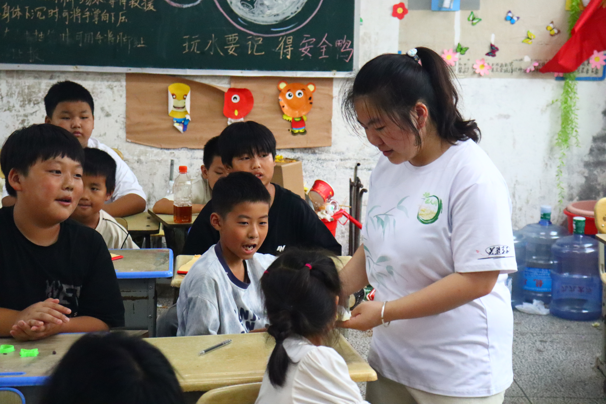 为普及科学知识,7月12日上午,医学部“天使在人间”暑期社会实践团在麻溪铺镇九校开展趣味科学实验课程。实践团成员陈小茵、范沣仪担任授课老师。