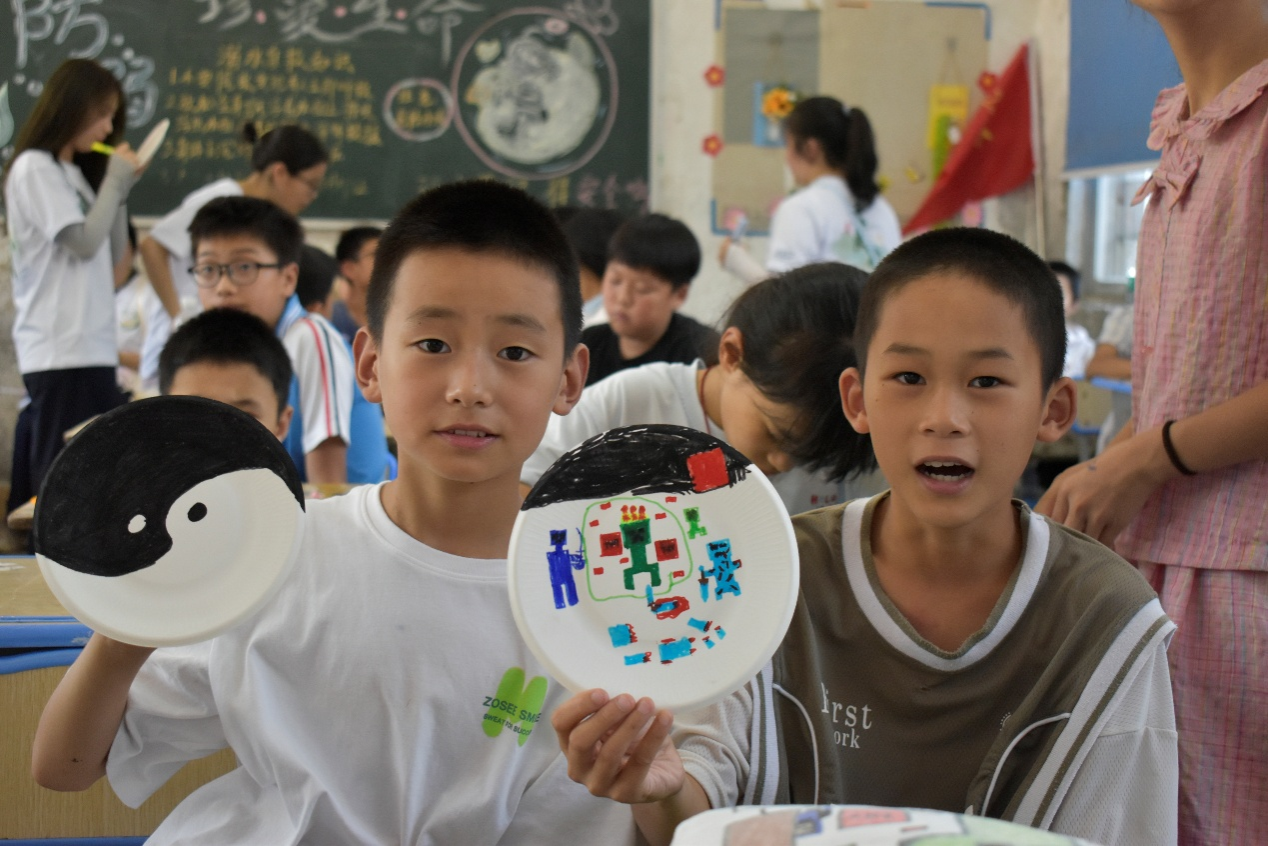 其中,实践团成员聚焦哪吒这一经典角色,围绕电影《哪吒之魔童闹海》展开,设置简笔绘画教学环节。课程通过分布教学的方式,引导学生们从基础线条入手,逐步完成哪吒形象的绘制,帮助学生们掌握哪吒简笔画的技巧。同时实践团成员还提及了电影角色曲等相关元素,增添了绘画过程的趣味性。“有趣的纸盘画”部分则以纸盘为特殊绘画载体,鼓励学生们打破常规绘画工具的限制。实践团成员先以的提问的方式引发兴趣,随后引导学生们发挥想象,同时提供铅笔、水彩笔等绘画用具,协助学生们在纸盘上进行创意创作。