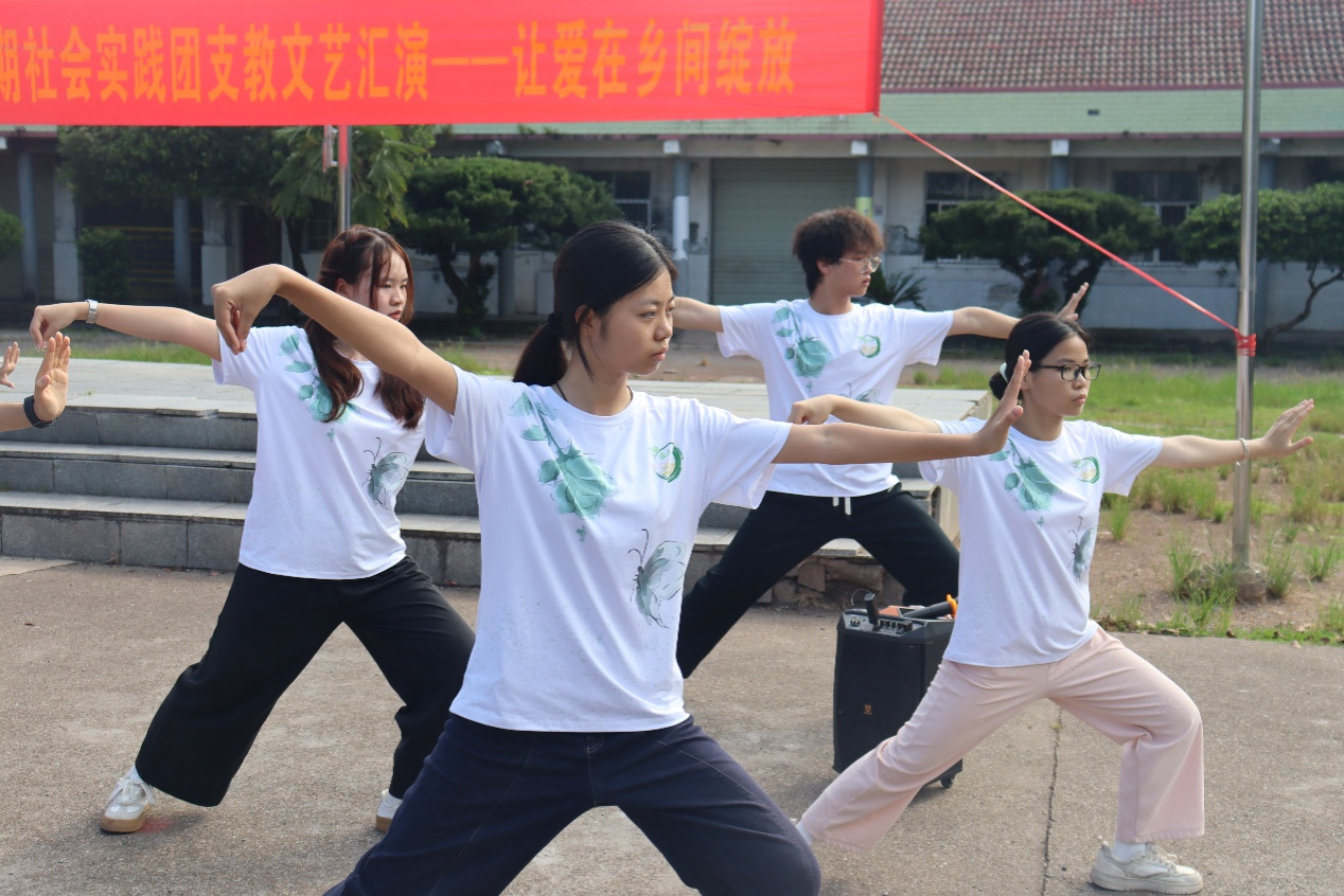 实践团成员与学生献上系列汇报演出。《童年》《踏浪》以清澈歌声传递童真童趣;特色舞蹈生动展现了支教期间学生的学习成果与成长收获;诗朗诵《纸船》传递出亲情的爱与美好;太极拳表演刚柔并济,振奋人心;最后,全体学生与实践团成员合唱《夜空中最亮的星》。