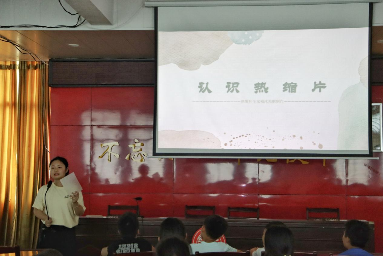 为关注学生素质发展,医学部“医路乡随”学生会三下乡社会实践团于7月20日在湖南省株洲市宁家坪镇杜口村,面向当地中小学生组织开展了热缩片手工课程。本次活动由实践团成员担任主讲与指导,共有45名学生参与。