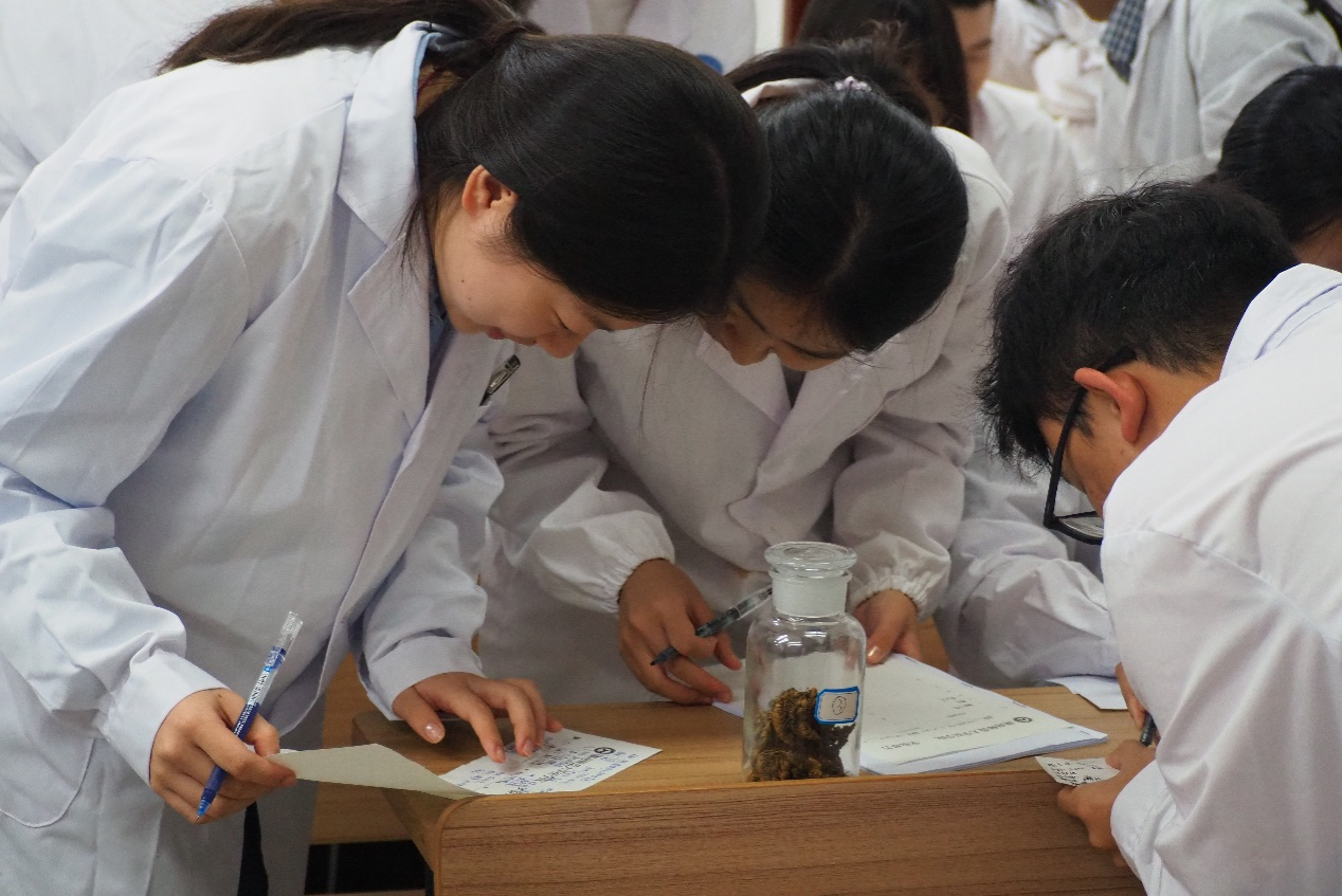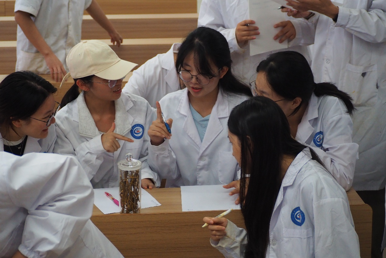 活动伊始,牟玲丽老师结合馆内实物标本,细致讲解中药性状辨别的核心技巧与注意事项。从药材纹理、质地判断,到气味分辨的正确方法,再到避免混淆相似药材的实用贴士,牟老师的讲解深入浅出,为后续竞赛筑牢基础。竞赛环节,现场陈列着12 味选自《中国药典》的常用中药材,涵盖根、根茎、果实和种子等多个类别。同学们手持答题卡,或俯身观察药材形态,或轻嗅辨别气味,快速写下答案。比赛以 “答题准确率高、速度快” 为评判标准,现场氛围紧张又热烈,学子们踊跃投入,展现出浓厚的学习热情与扎实的专业功底。