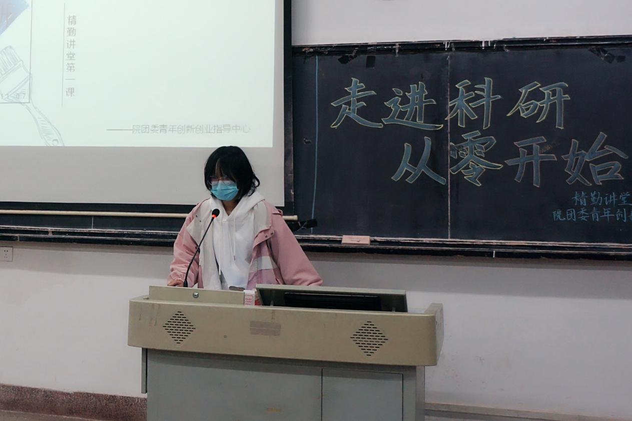 11月7日晚,由我院团委青年创新创业指导中心组织的精勤讲堂之“走进科研,从零开始”讲座于勤医楼七教室举办。会议由院团委青年创新创业指导中心志愿者吴心欣主持,主讲人为2020级临床二班吴斯。