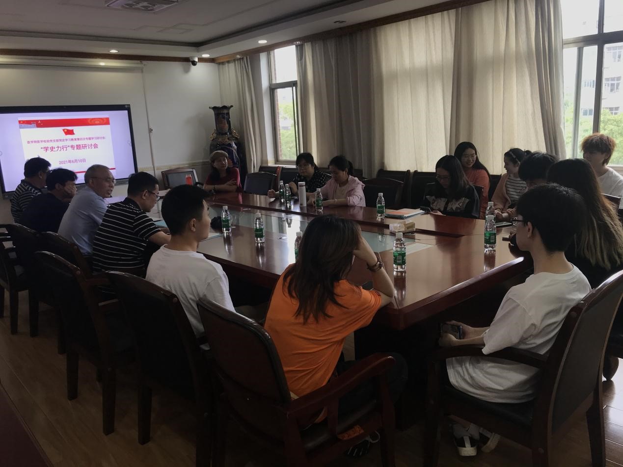 在“学史力行——我为师生办实事”专题讨论会。全体党员以“我为师生办实事”为主题展开讨论,并提出切实可行的行动方案。老师们谈到,在今后的教学和科研工作中,要注重把握学生成长的每个环节,应从新生入学的思想引导、课程学习辅导、操作技能培训、科研思维训练,到学生考研释疑和就业指导为学生的健康成长和全面发展搭台。