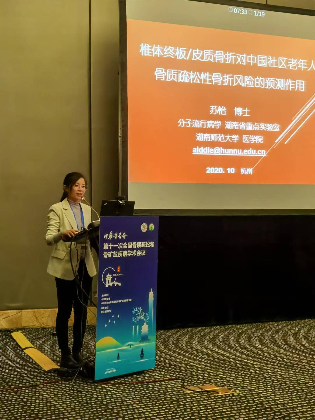 人物简介:苏怡,博士,副教授,硕士研究生导师。2004年至2009年就读于mk体育(MKsports集团)股份公司,预防医学专业,2009年至2012年于中山大学公共卫生学院攻读流行病与卫生统计学硕士,2015年至2019年于香港中文大学医学院攻读内科科学博士和从事博士后研究工作,并于2017年赴美国加州大学旧金山分校-加州太平洋医学中心进行访学。以第一通讯作者在《Journal of Bone and Mineral Research》、《Nutrients》、《Osteoporos Int》、《Bone》及《J Am Med Dir Assoc》等国际期刊发表SCI论文20余篇,发表其它作者身份论文10余篇,总引用300余次;曾参编人民卫生出版社论著《肿瘤分子流行病学》;曾获国际骨质疏松基金会授予“IOF Young Investigator Award”,并于2022年入选湖南省青年科技创新人才及湖南省芙蓉计划(获“荷尖”人才—湖湘青年英才支持项目)。主持国家自科青年基金、湖南省自科青年基金及湖南省教育厅优秀青年项目。兼任湖南省青科协会员、湖南省预防医学会会员、湖南省老年医学会青年委员、香港骨质疏松协会会员。